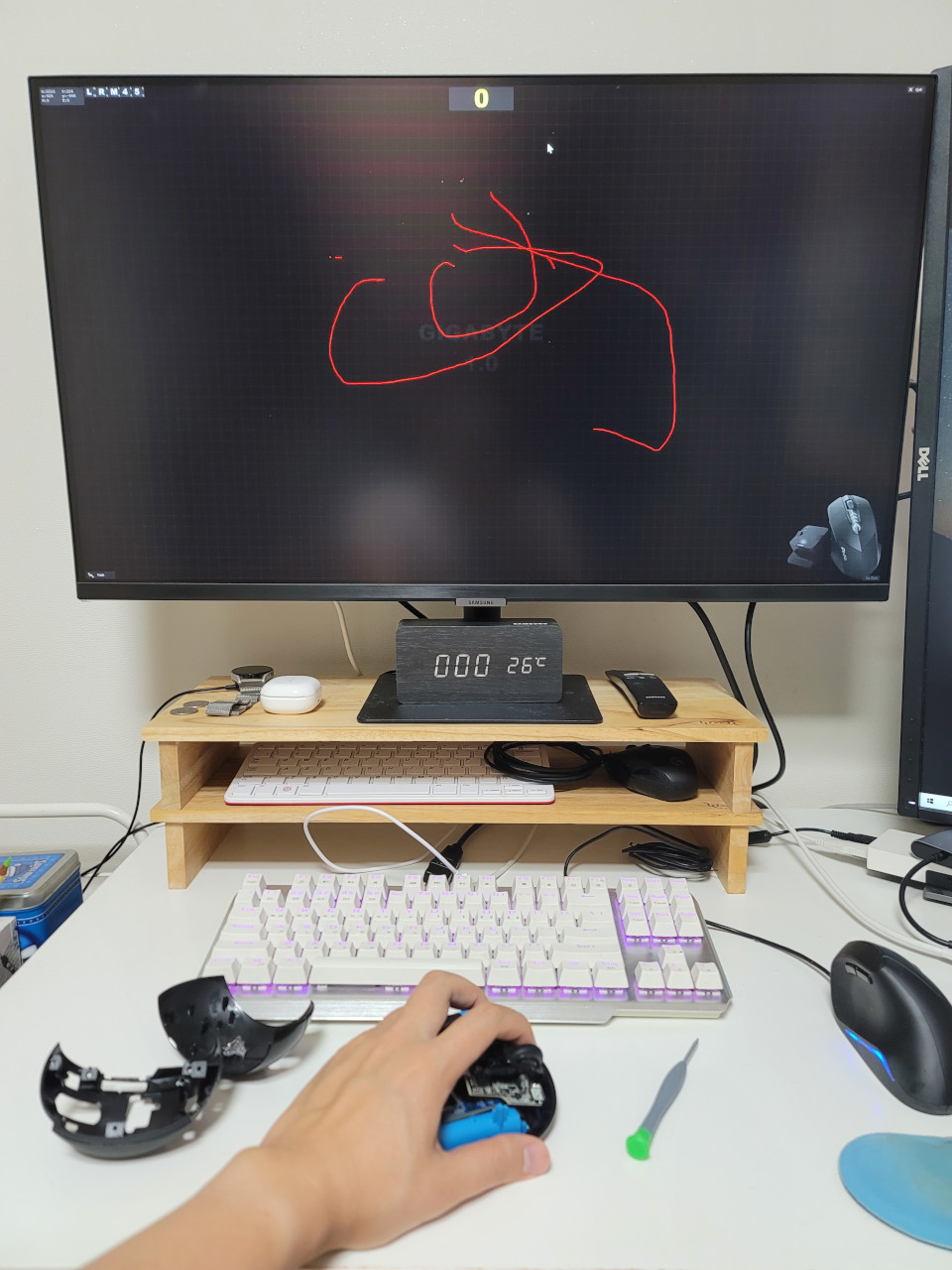 순접이 완전히 굳은 뒤에 다시 상판을 조립하고 테스트를 해 보니 클릭 미스 없이 왼쪽 클릭이 아주 잘 동작하네요. 당분간은 이 마우스와 함께 열심히 일할 수 있지 않을까 싶습니다.
