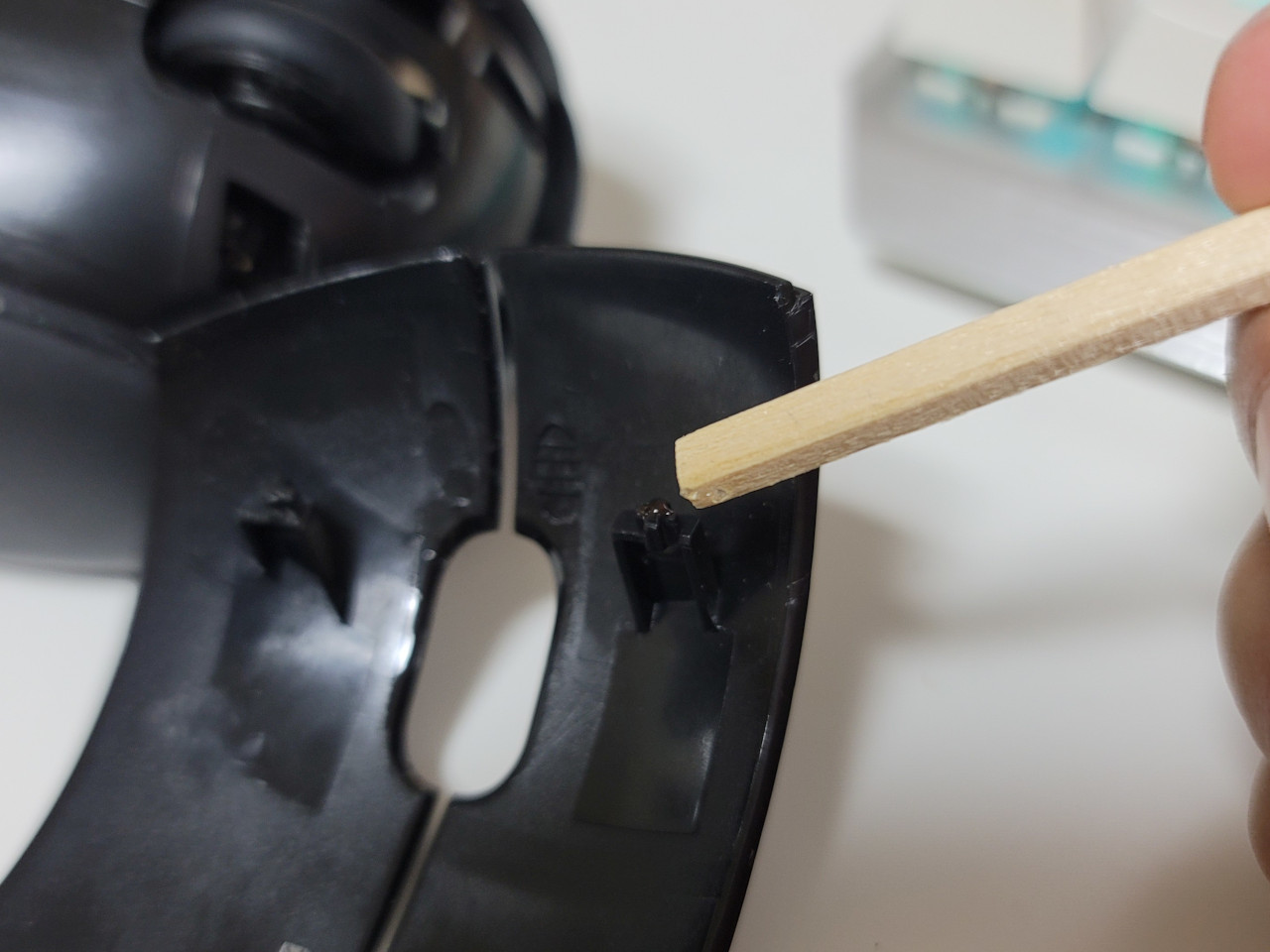 해당 스레드에서는 아주 얇은 플라스틱 조각을 막대 끝에 붙이는 방법으로 해결했다고 하였는데 저는 그런 조각을 구하기 힘들어서 어떻게 할까 고민하다가 순간접착제를 사용하기로 했습니다.